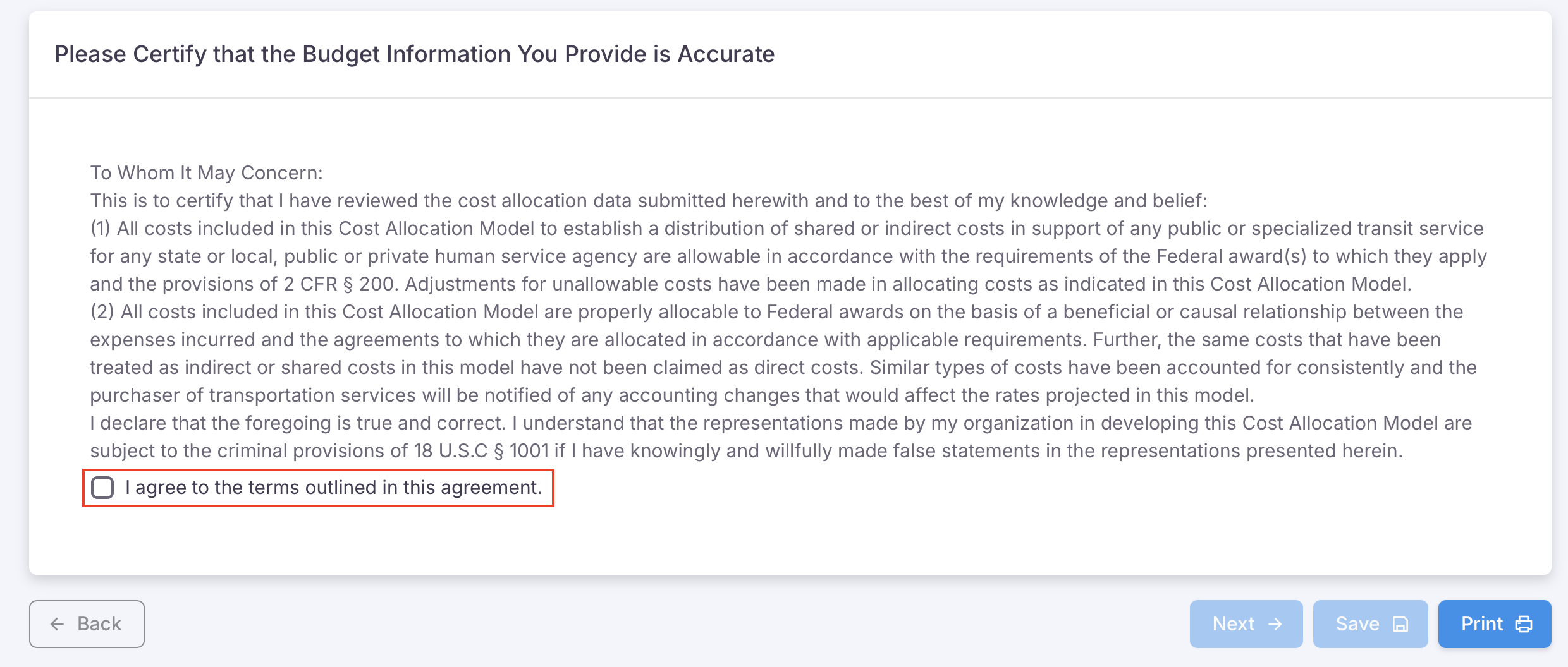 In this section you will be required to certify that the information that you provided in the system is to the best of your knowledge and correct to your knowledge.