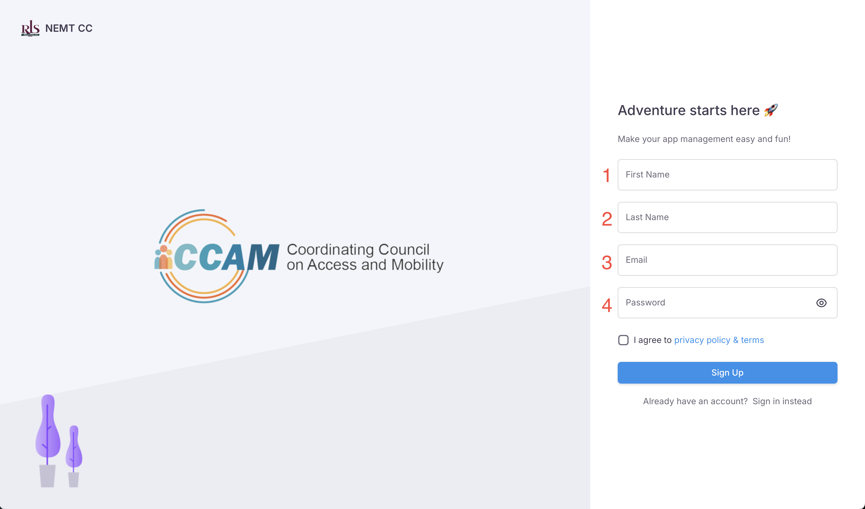 Creating an NEMT CC Account