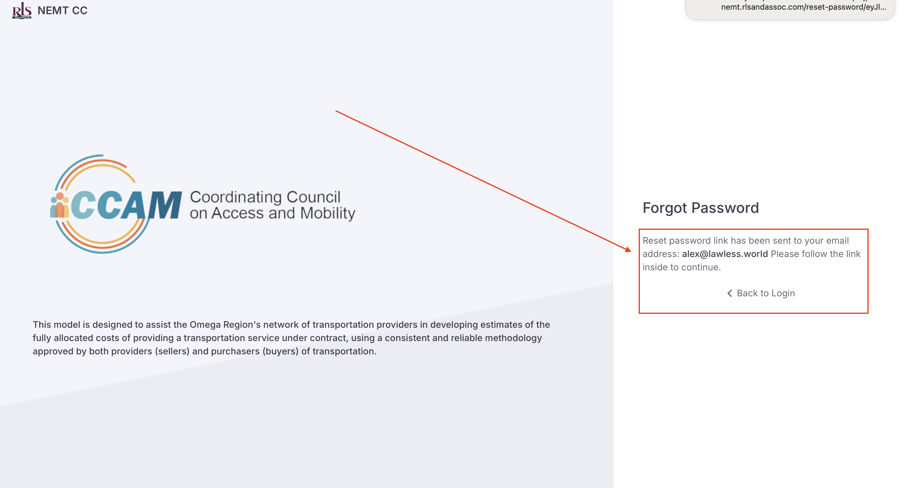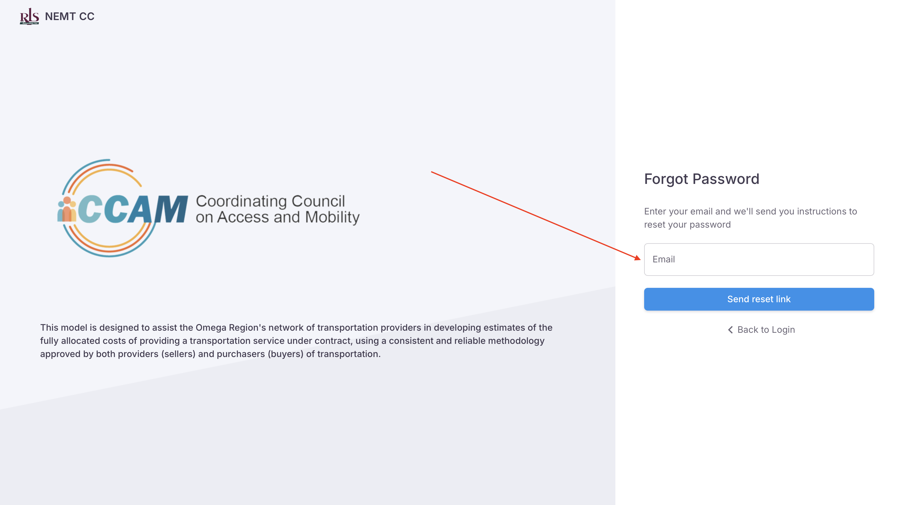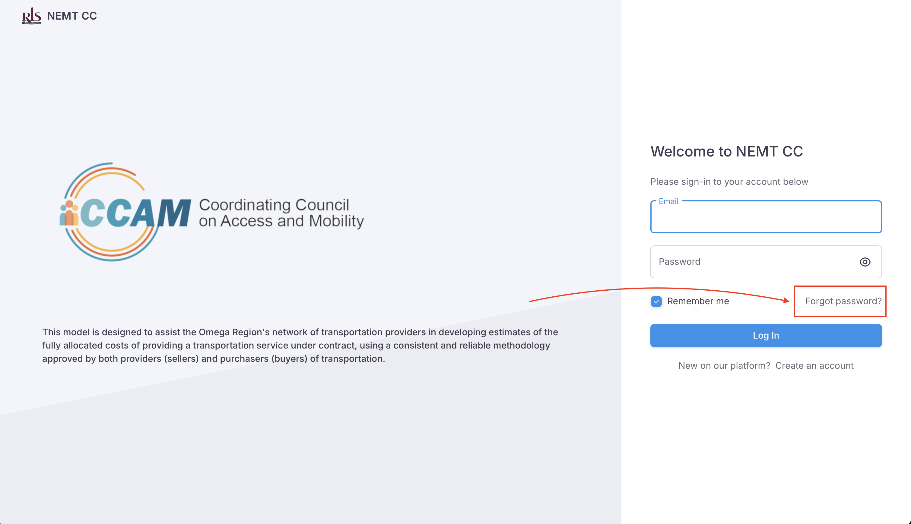- Go to the NEMT CC login page and select the link, 'Forgot Password'