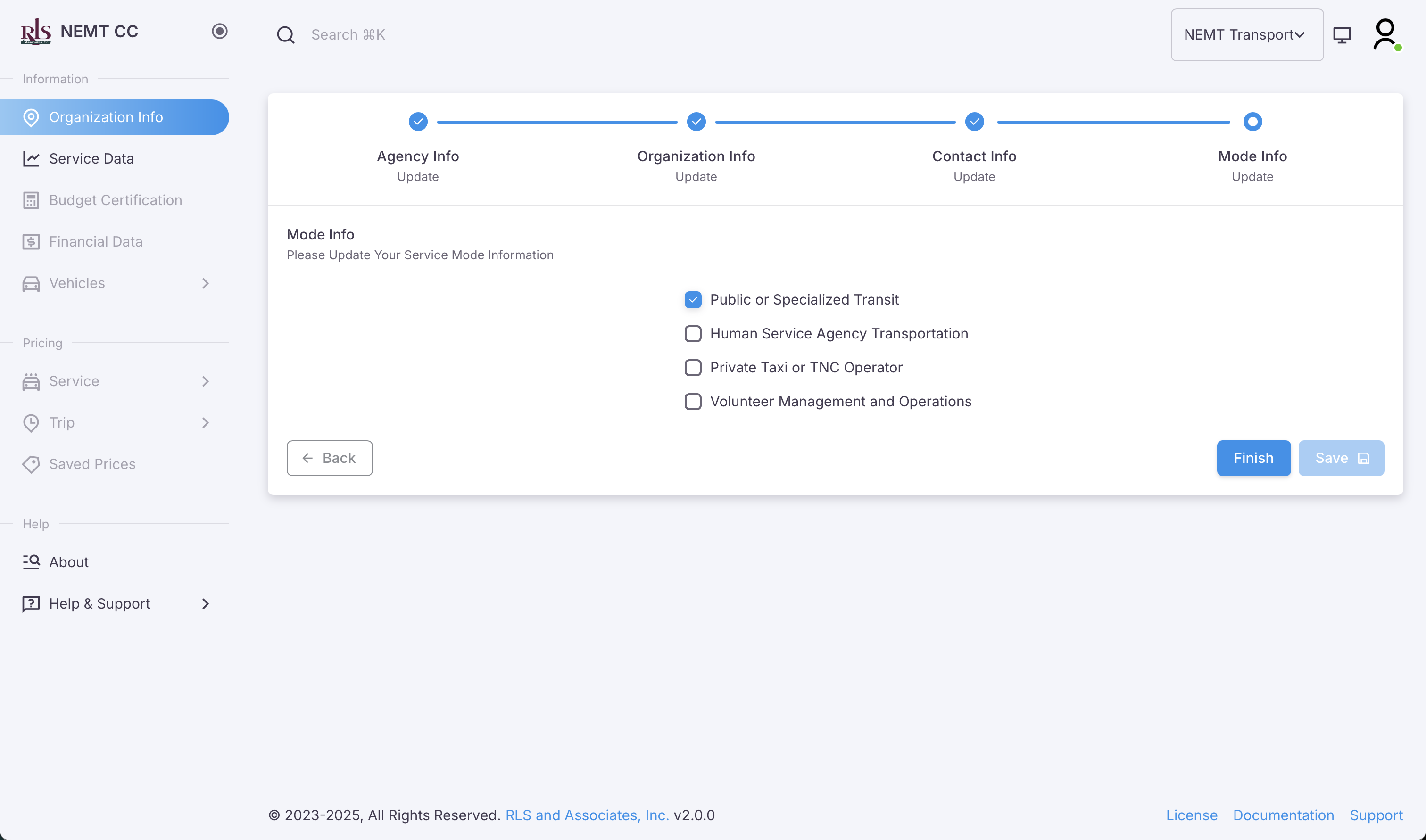 Depending on the mode selected here certain features will be available to the user in version 1 ALPHA release and more than a single mode of service can be selected here.