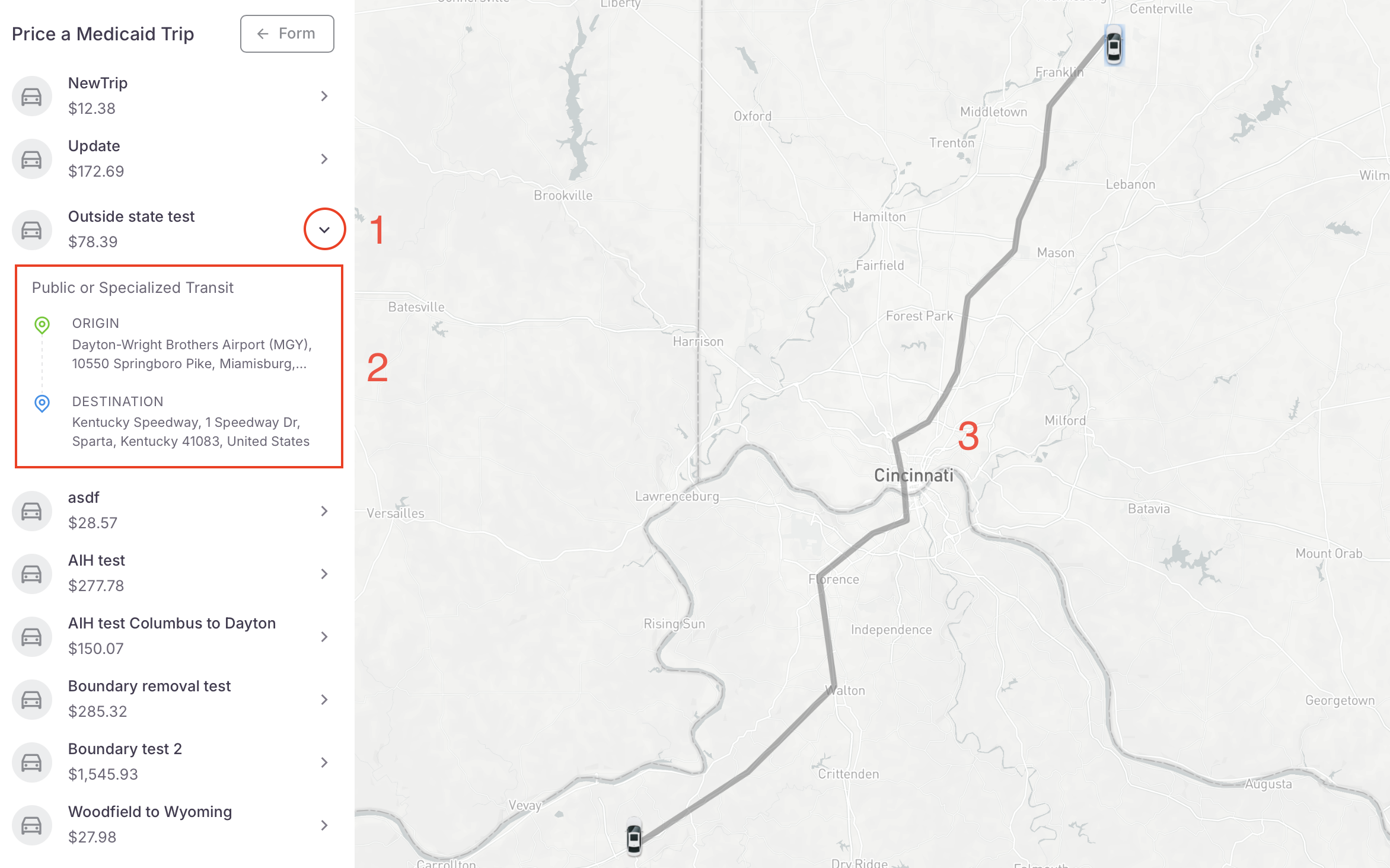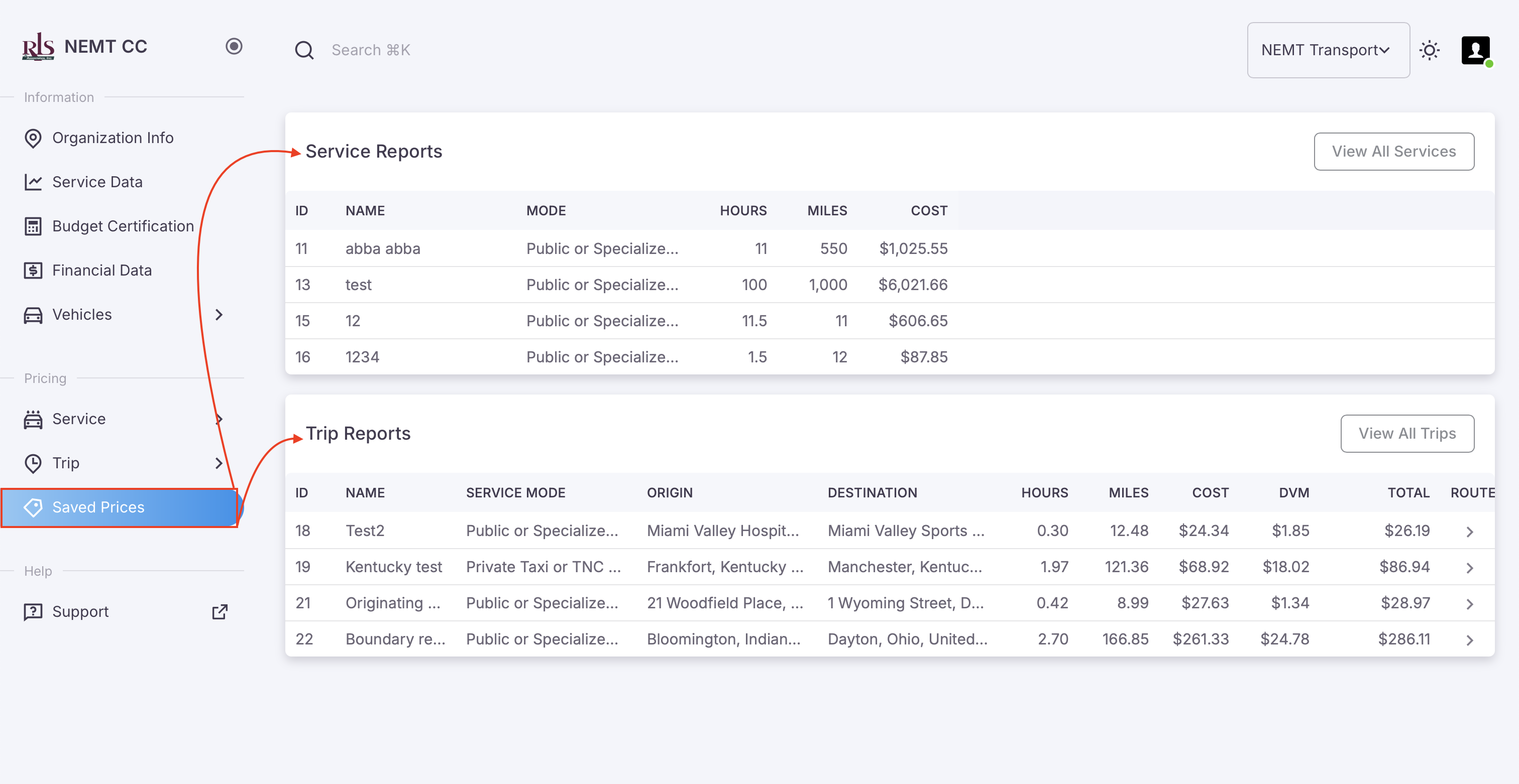 There are multiple ways that one can view a previously run trip on the NEMT CC.
