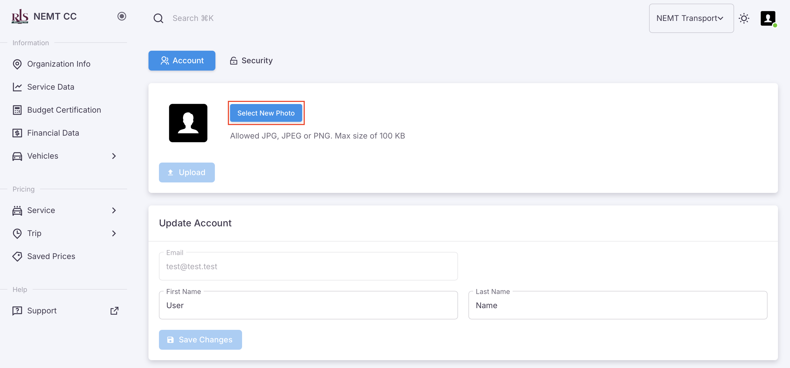 Updating your profile picture can be done from the settings menu link housed in the User Profile photo. Currently, allowed file types are; JPG, JPEG or PNG. Max size of 100 KB